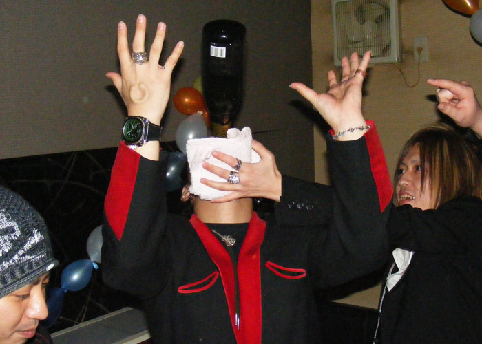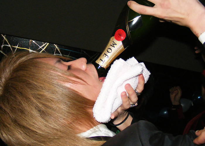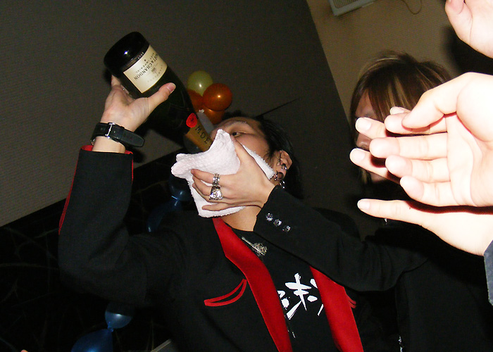 もちろん、主役の海人クンからイッキです!!ビンダでシャンパンを飲み回していきます!!♪