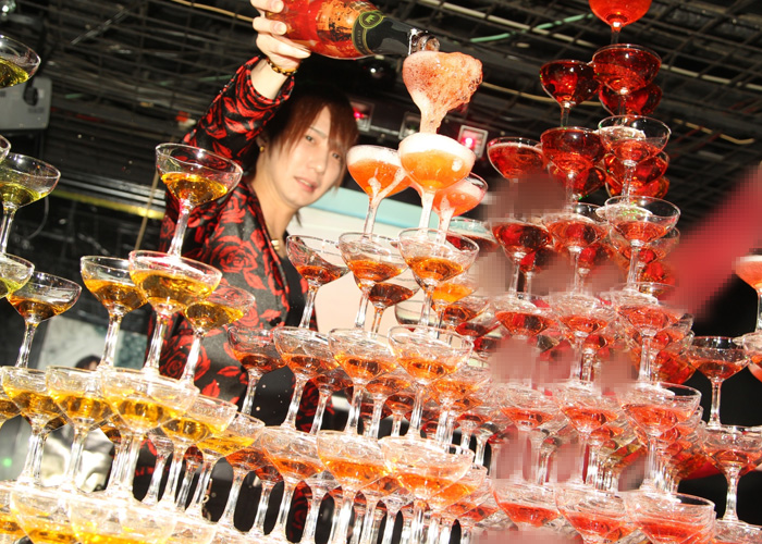 たまには大胆に!!すごく楽しそうに注がれていくシャンパンタワー、あまりにも大きすぎて果たして終わりが来るのか!?気持ち的にはずっとこの時が続けばいいのに~♪