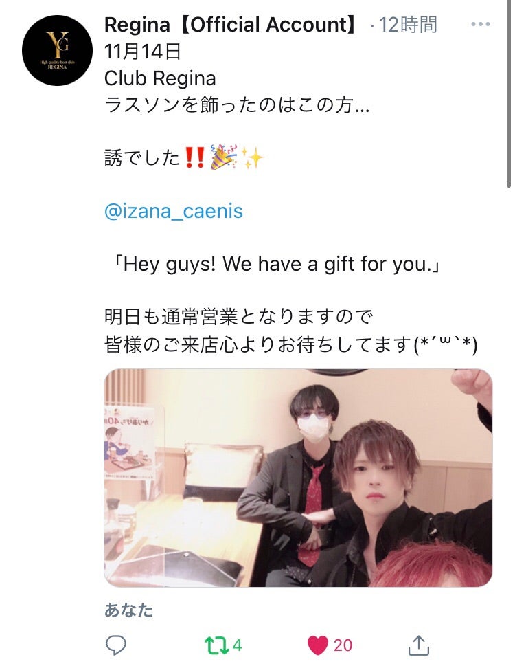 11月16日Club Reginaラスソンを飾ったのはこの方…誘でした‼️🎉✨@izana_caenis「#みなとしか勝たん 布教しろ。みなとさんを崇めろ。#みなちゅん #みなとさん優勝 #みなとみらい… https://t.co/1FitcyDeoY