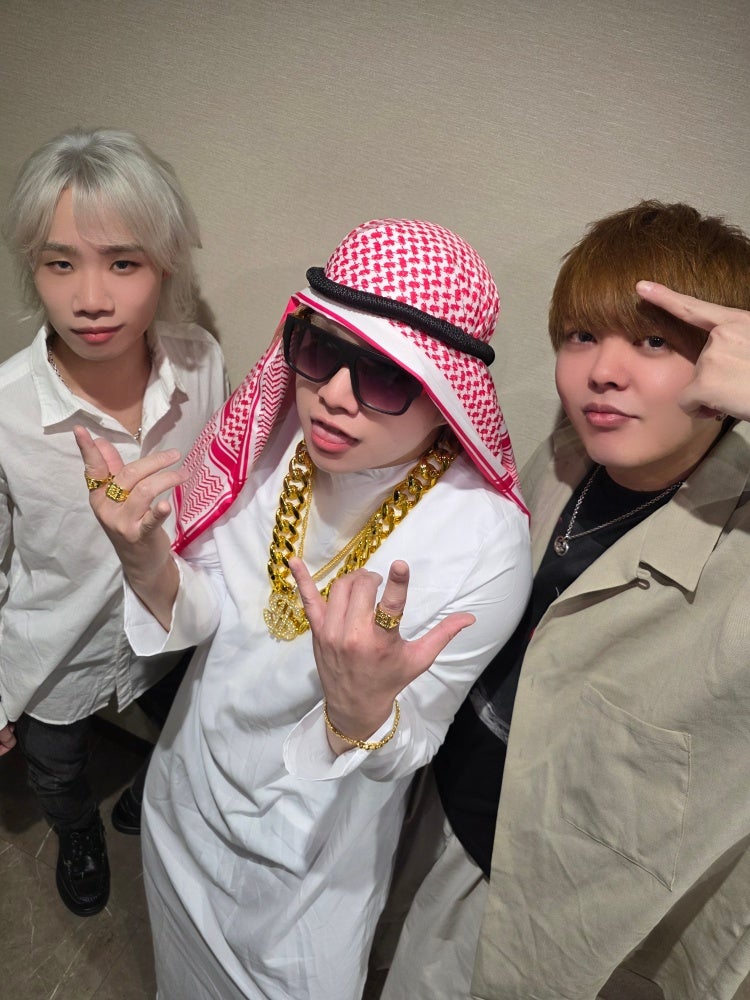 他のふたりが爽やか路線なのに、なぜか1人だけ石油王スタイルで出勤してきた凛👳♂️笑 本人いわく「これも全身真っ白だからテーマ通り!」とのことです😂(確かに白縛りは守ってるけど!笑)