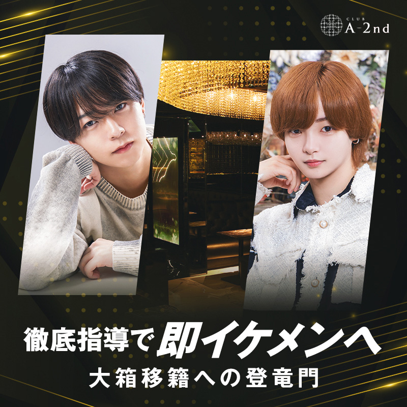AIRグループ初めての育成特化型ホストクラブ。 グループの顔であるAIR本店の姉妹店としてOpen 幹部の在籍もなく元売れっ子ホストが専属教育係となりマンツーマン指導が特徴です。 後々は大箱に羽ばたくためには基礎が必要です!まさにそこに特化した店がA-2ndです! | |