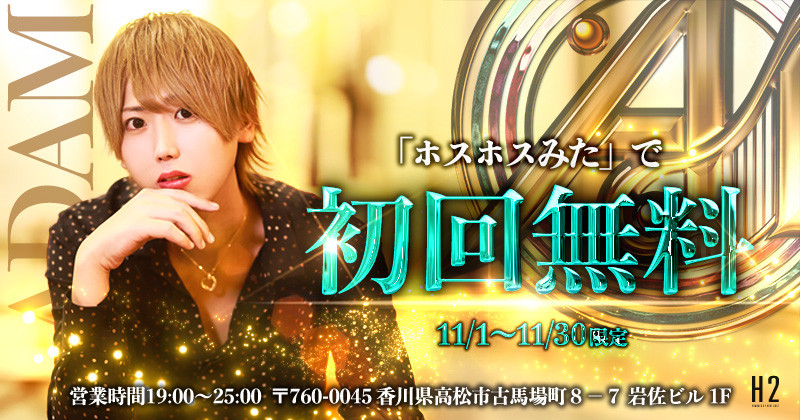 神条 蓮が送る「一流の男達」をコンセプトに『ADAM -アダム-』始動!!洗練されたキャスト陣が、高松の歴史に名を刻む。『ADAM』で最高級のひとときを・・・。