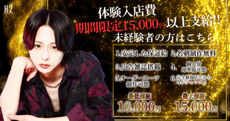 楽しい仲間達と楽しく稼げる職場です! このページをご覧になられた方は、 1mmでも自分に自信がある方だと思います。 その自信をEDENで一緒に咲かせましょう!! ○内勤・プレイヤー共に大募集! ○入店祝金アリ+体験料大幅UP ○未経験者大歓迎!売上0でも日当保証15,000円 ○学生でも大丈夫!! ○経験者に限り3ヶ月間売上100%バック | |