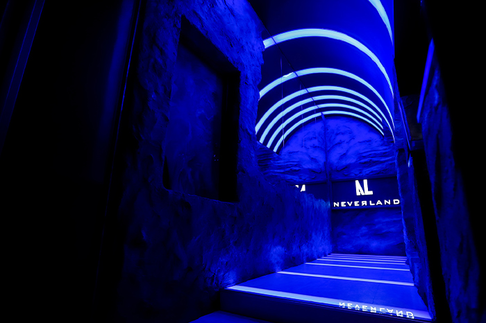 千堂 葵の世界観が宿る『NEVER LAND』。そこは、洞窟のように外界の喧騒から切り離された、静寂と光の店内。深呼吸したくなるほどの癒し空間をお楽しみください。