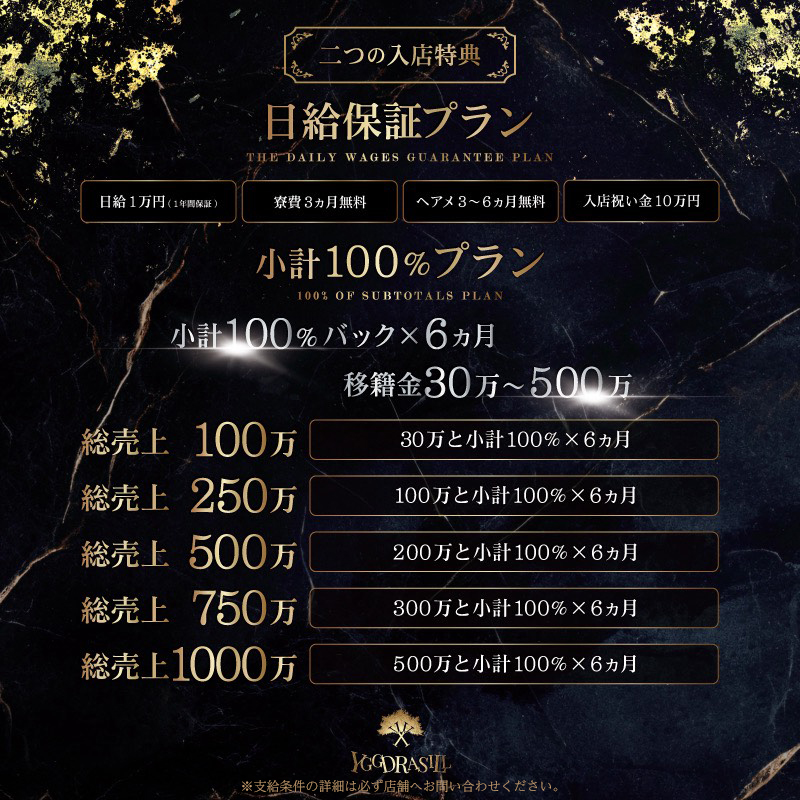 Yggdrasillは幹部チームによる営業指導、マネージメント力により他店舗には負けないスキルを経験問わず感じていただける環境です!
