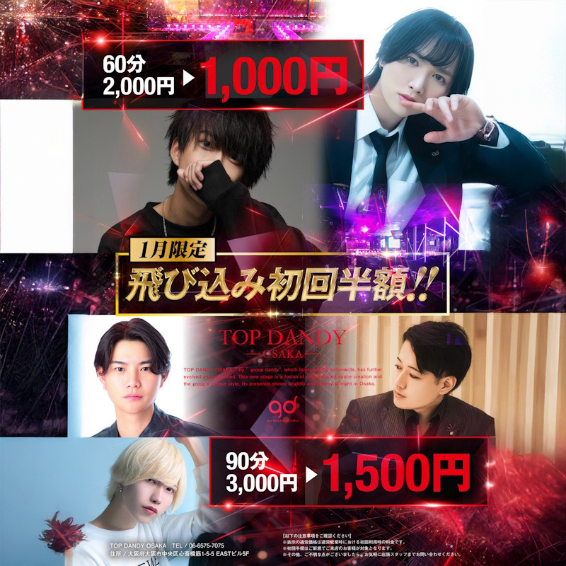 『TOP DANDY OSAKA』さんより初回半額のお知らせ!!