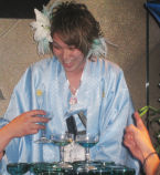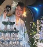 さぁっ!いよいよシャンパンタワーの時間になりましたよぉ☆それにしても、タワーの青と袴が良く合っていますね♪
