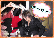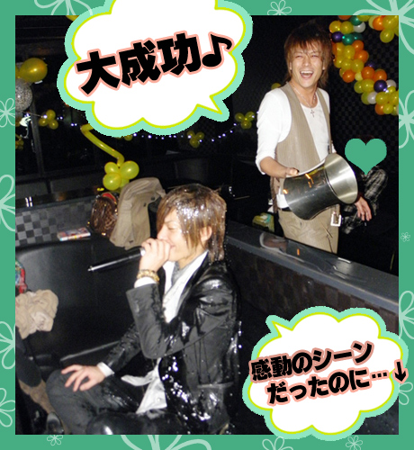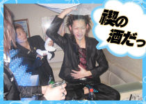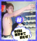 奈津様代表が、日本酒の樽目がけて美月クンにジャーマンスープレックスッ(汗)!!みんなを盛り上げるためなら体を張ることもいとわない、ホスト魂に乾杯!!