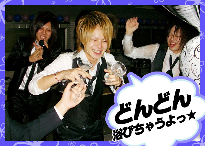 両手にグラスを持って、自らシャンパンを浴びちゃうキャストさんも続出(笑)★皆さん、とってもイイ顔してますっ!!