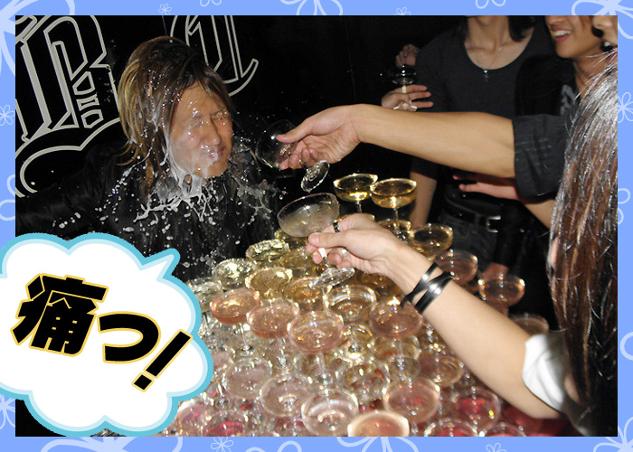 いっぺんにシャンパンを浴びせられると、これが結構な痛さなんですよね…(汗)♪
