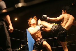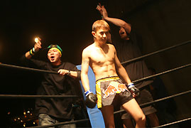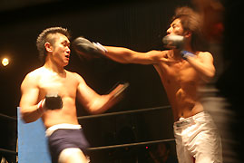 試合終了直前…!!2R、TKOで龍也の勝利…!!試合はこの日のベストバウト☆