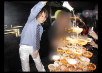 キラッキラのシャンパンタワーが完成~☆全員でグラスを持って乾杯!!お・め・で・と~う♪1杯目のシャンパンをグイっといただいたら……?