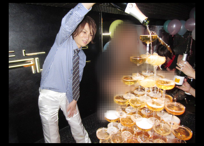 京ホスト長と葵幹部補佐のシャンパンファイト開始っ!!両手にシャンパン、そして次のシャンパンがスタッフさんによって用意されています!!