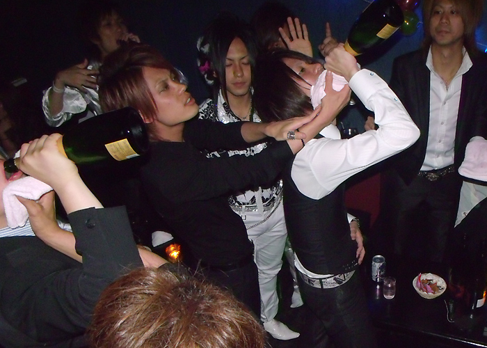 写真を撮って間もなくシャンパンコールがはじまります!それと同時に繭クンはもうスーツを脱ぎ捨ててます(笑)