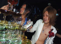 まだまだぁ~っ!蓮クンも勢いよくシャンパンでタワーを満たしていきますよーっ!!