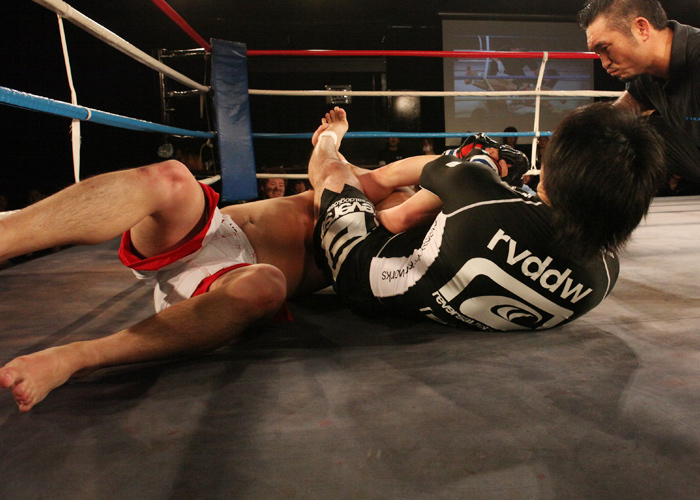 開始直後、タックルから腕を押さえ込みます!!そのまま1本!2R45秒でレン選手の勝利です☆