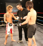 ワンマッチ、キックルールの最終戦となりました!!対戦は立川『INFINITY』風魔 蓮選手VS歌舞伎町『曼陀羅』ライト選手の試合開始です!