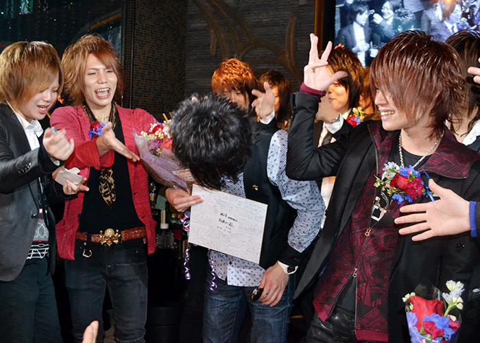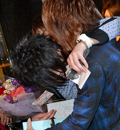 『CANDY』さんにてプレイングマネージャーとなる拓斗幹部補佐も早速花束を頂いていました☆左手にはビールを持っています…これは盛り上がる予感!?