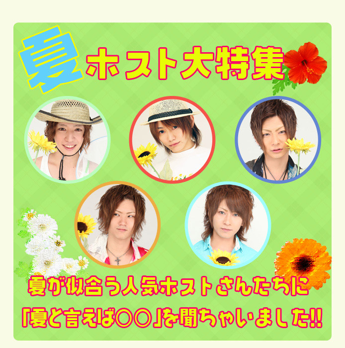 本日は海の日!!いよいよ夏真っ盛りと言うことで、夏が似合うホストさんたちに「夏と言えば○○!!」を質問しちゃいました♪是非ご覧下さい☆