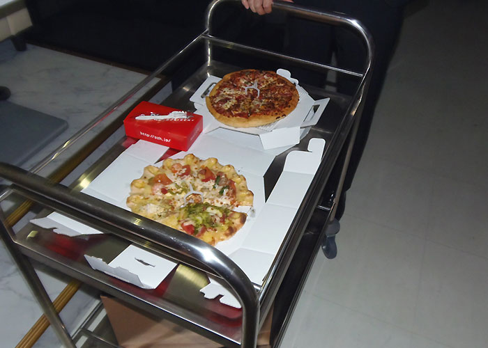 ホールにピザが運ばれてきましたよ!!