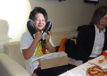 大好きな大きいピザを2枚もプレゼントしてもらってゆーま統括も嬉しくてこの表情です!!