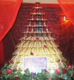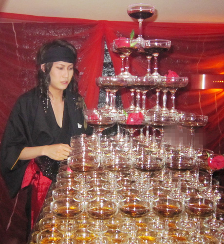 一際輝きを放っていたのが、こちらのシャンパンタワー☆薔薇の花弁が妖艶にタワーを演出していますよ♪