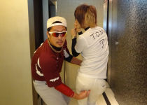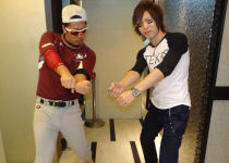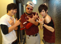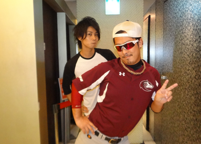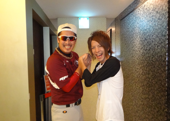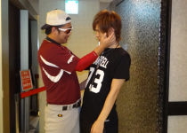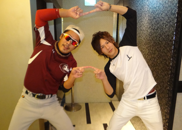 隆二クンとはバッティングポーズ!!元野球少年だったJAYマネージャー♪ちゃんとバットにボールを当たるか見ている所までやってくれちゃうのは流石です!!