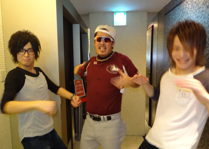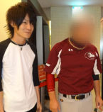 隼人クンとは背中を見せて一枚☆3.2.1…パシャッの瞬間にJAYマネージャーお尻をプリッ♪背中でも笑いを忘れないJAYマネージャーでした!!