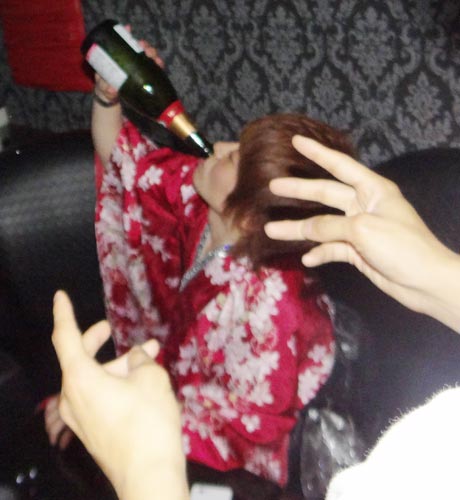 シャンパンを無事注ぎ終わり、皆さんに配っているときの流衣Producer♪こんなにも叫んでいる姿見たこと無いッ!!