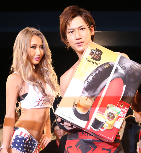 ベストパフォーマンス賞…オラキオ選手に送られ、あいかりんと一緒にこのポーズ♪