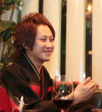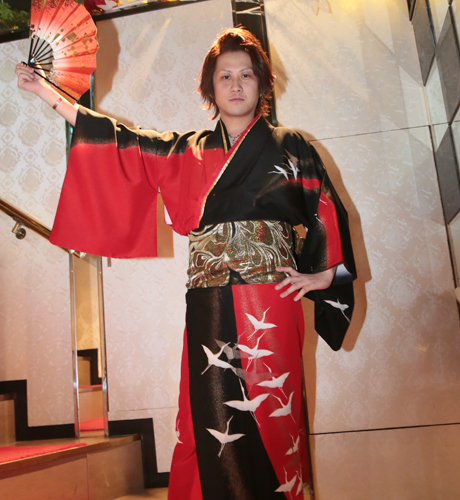 義人店長、忙しい中でもピンショット撮らせてくれましたよ~っ♪鶴がデザインされた、とっても男らしい着物姿の義人店長☆
