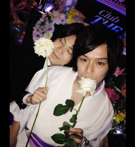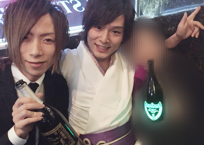 『Arrows -first-』さんより美咲 夢支配人とRuI主任がお祝いに駆けつけてくれたところを記念にぱしゃり♪なんとお祝いのシャンパンまでプレゼントされちゃいましたっ!!