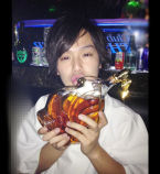 お祝いのシャンパンが途切れる事なく贈られ続け、嬉しい悲鳴が聞こえてきちゃうっ♪お茶目な表情でボトルに口付け☆