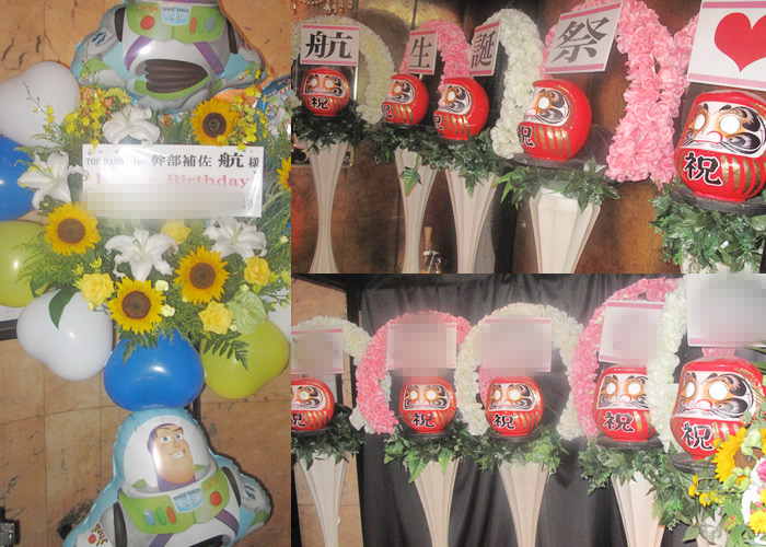 本日は航幹部補佐のバースデーイベント☆お店の前には、たっくさんのお花が並んでいます!!皆さんからの気持ちが嬉しいですね♪