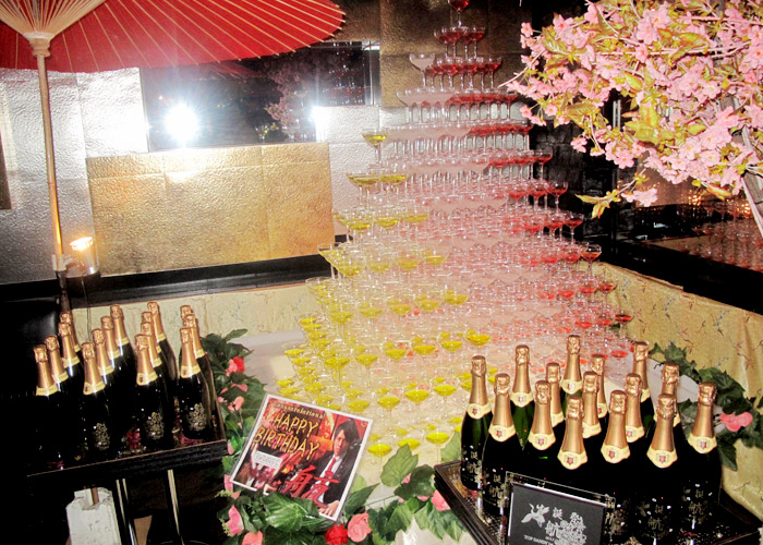 店内には、なんとも豪華なシャンパンタワーが飾られていました☆☆とっても綺麗なグラデーション、これは完成の瞬間が楽しみですね♪