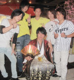 幹部補佐の皆さん・Sin代表代理・あたるplayingmanagerに囲まれたこの一枚☆今日は航幹部補佐の事を、盛大にお祝いしてあげましょう♪