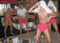 ついには、誰が誰だか分からなくなってしまいました…(笑)シャツで顔を覆っているのに、飲めるんですか!?凄すぎますっ☆