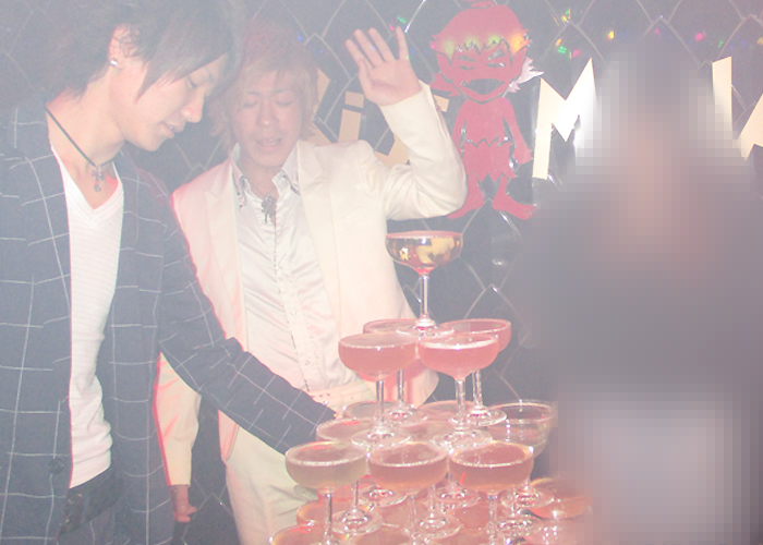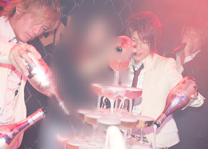 四方八方からタワーの方へ差し出される光煌くシャンパンボトル♪そこから流れ出るシャンパンが放つ芳醇な香りとイケメン達のオーラに、完全に酔いしれてしまいそうでした☆
