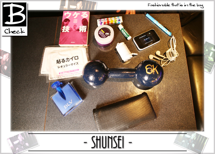 気になる中身はこちら!!かばんにダンベル・・・!?そして、『ウケる技術』という本☆日々自分を磨くことを忘れない瞬生さんならではの中身なんじゃないでしょうか♪