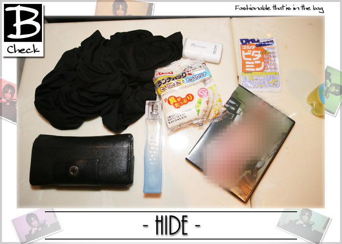 こちらがhideさんのかばんの中身となりま・・・す!?なんとも怪しげなDVDがその他のアイテムを制圧しているという事態に・・・