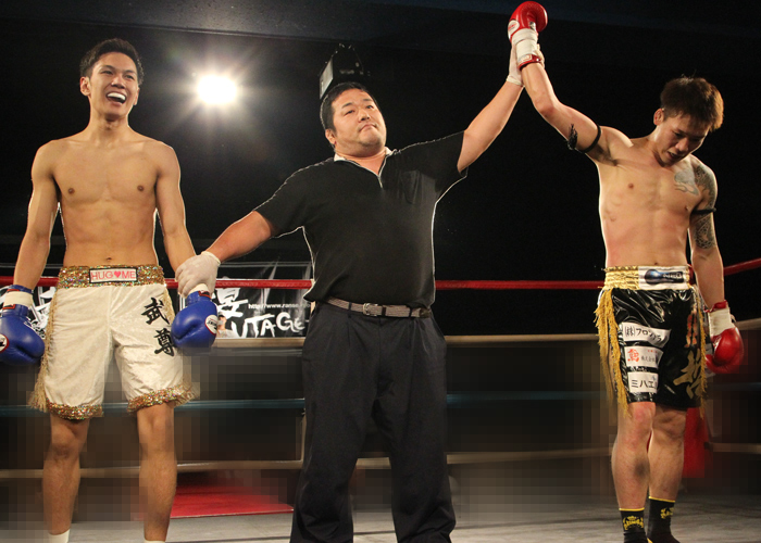 青コーナー【CLASH-osaka-所属】武尊 選手VS赤コーナー【club THE STINGER-tokyo-所属】SATORU 選手