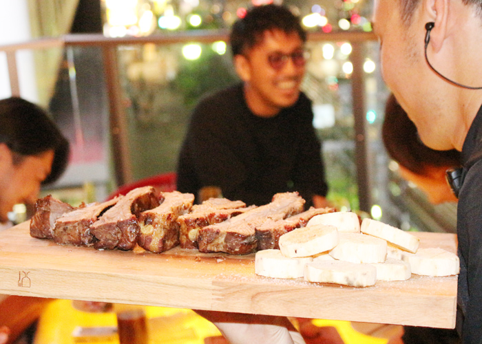 お酒に、話に夢中になっていると…お料理が運ばれてきました☆【Tボーンステーキ】!!し・か・も☆仕上げをテーブル横で行ってくれるんです♪