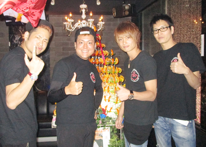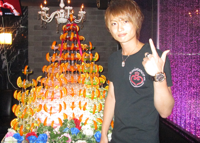 撮影の後ろに見えていたシャンパンタワー★花道主任に送られていました!!