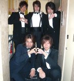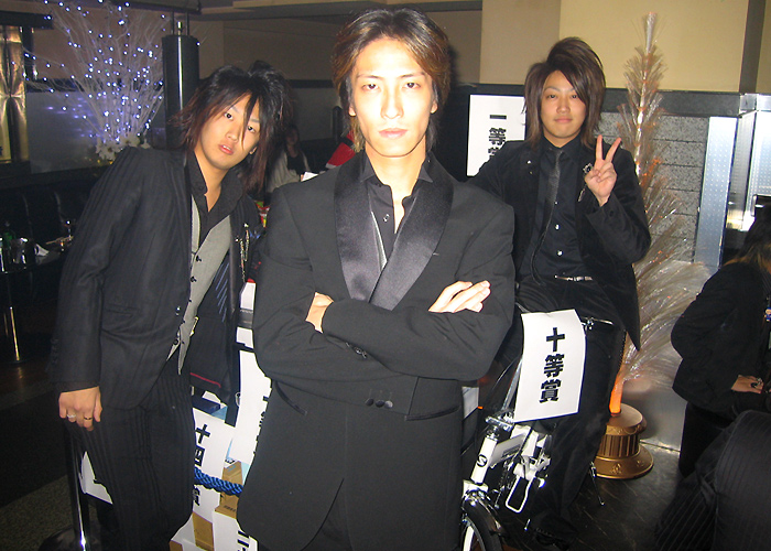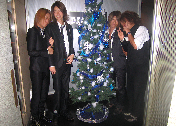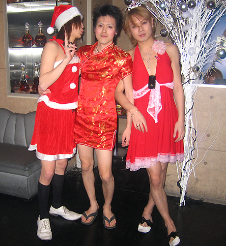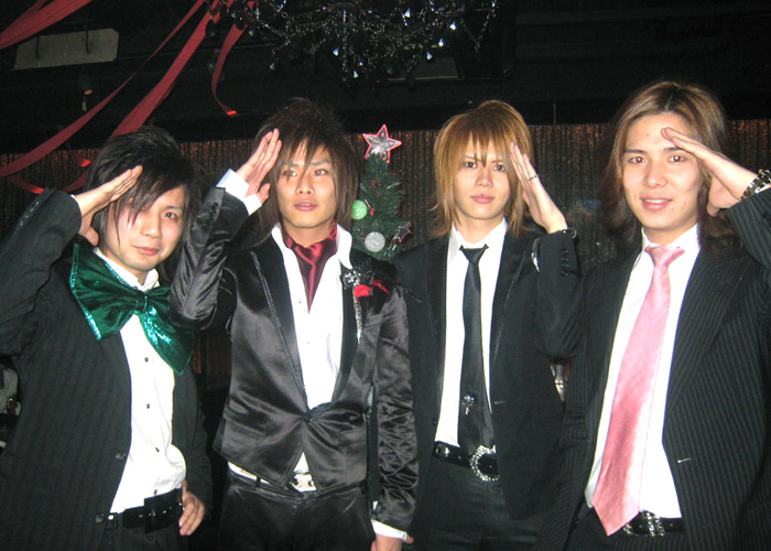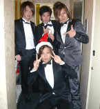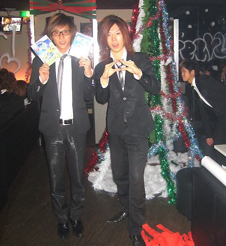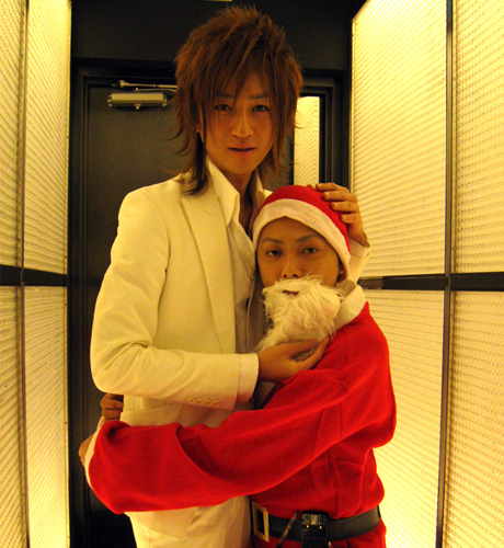 はい~♪コチラ『AAA』さんのクリスマスパーティーの模様をお届けいたします…!!鷹代表はシックにストライプのスーツにピンクのネクタイ☆いつものスタイルを貫きます♪栄幹部補佐のサテンのスカーフや、一聖幹部補佐のこれまたサテンな蝶ネクタイがいい感じです(笑)。ちゃんとクリスマスカラーなんですねっ♪