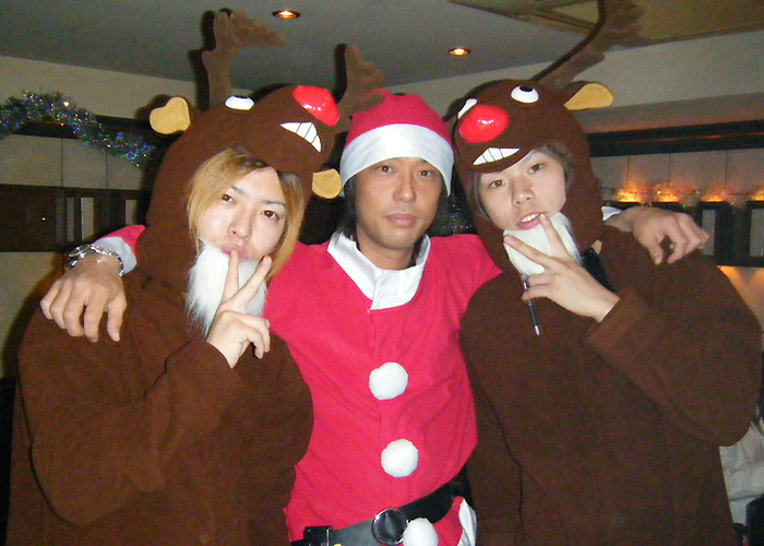 幹部の皆さんにも集まって頂いちゃいましたよー!智也代表と水希幹部補佐はサンタさんに、司支配人はトナカイに、そして陵太幹部補佐と大輔幹部補佐はキャバ嬢に変身っ★
