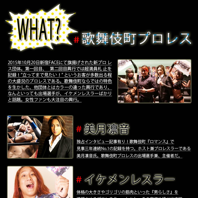 今回は、歌舞伎町『ロマンス』のホスト兼プロレスラー、美月凛音ゼネラルマネージャー主催【歌舞伎町プロレス】についてご紹介いたします。