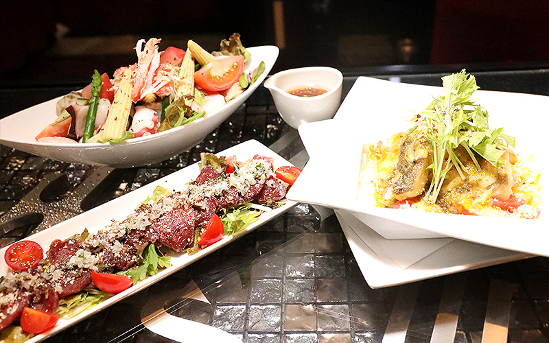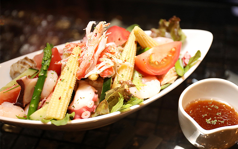 食材によく合うさっぱりとしたドレッシングが絡み合い皆様の舌を唸らせること間違いなし。