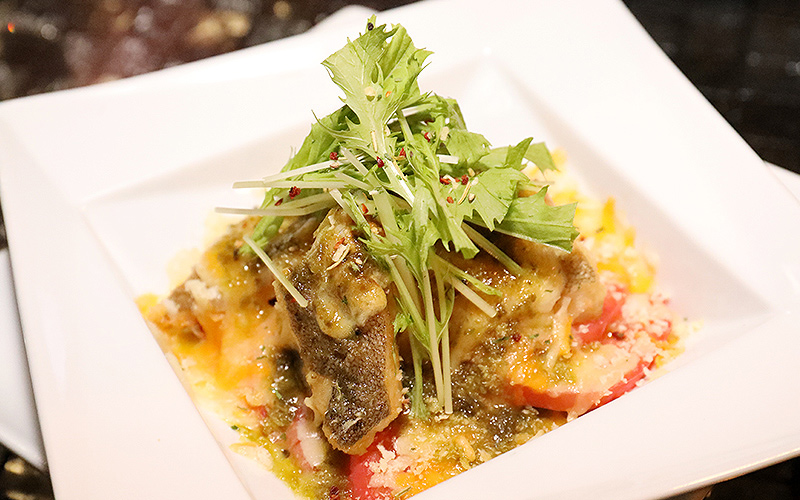 更にバジルを加える事により、バジルの香りが白身魚と見事にマッチングし美味しさを更に、引き立てられている。
