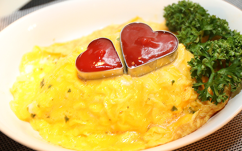 ハートのケチャップは可愛いだけではなく、ちょうどいい味付けに計算され、上品な味付けにもかかわらず、どこか懐かしい味付けに。