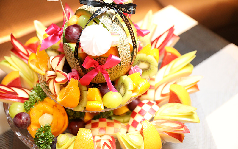 フルーツ盛りといえば目でみてお楽しみいただくのも醍醐味ではあるが、それだけではなく、出てきた瞬間に果物の香りが広がりまるで南国にでも来たかのような気持ちを味わえることでしょう。